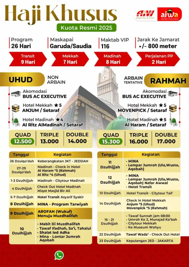 Kami menjadi pilihan ribuan jamaah karena menawarkan layanan Haji Khusus yang resmi, aman, serta proses keberangkatan yang jelas